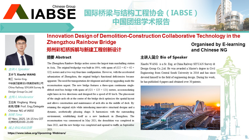 报告题目:郑州彩虹桥拆解与新建工程创新设计(Innovation Design of Demolition-Construction Collaborative Technology in the Zhengzhou Rainbow Bridge )